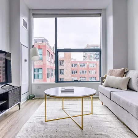 Die 1-Zimmer-Ferienwohnung W Loop Studio W Gym Pool In Heart Of Greektown Chi-532 befindet sich im Viertel West Loop von Chicago, circa 10 Minuten von der U-Bahn-Station UIC-Halsted entfernt. Dieses 58 m² große Apartment bietet einen Dachpool und eine Gemeinschaftslounge für den Komfort der Gäste.